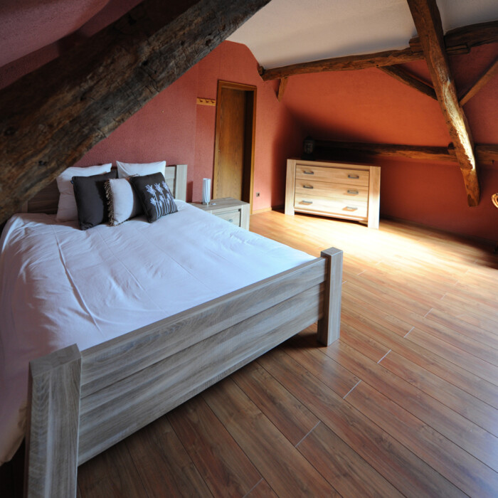 - Ein gemütliches Schlafzimmer mit „Boxspring“-Matratzen (doppelte Taschenfederkernmatratze)