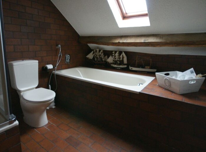 - Badezimmer mit Badewanne, Dusche und Toilette